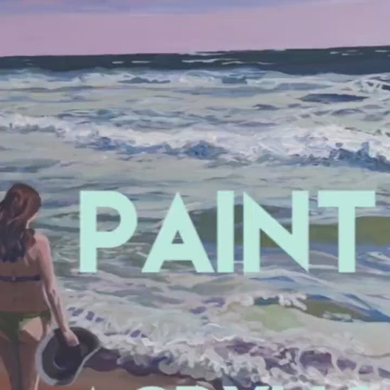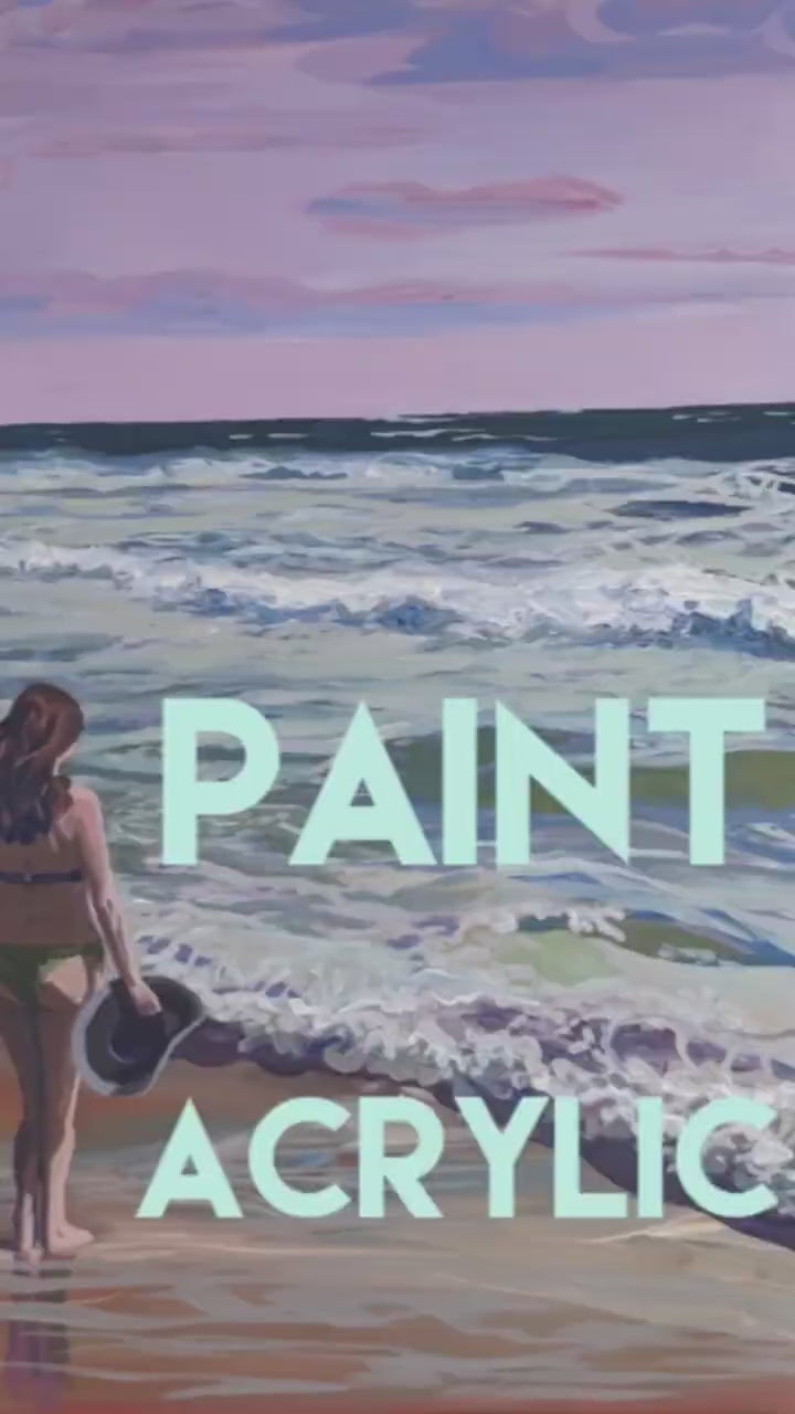 - Art print designed from a painting of a young lady looking towards the sea, while standing on the wet reflective beach sand. It reminds me of my teens, growing up near a vacation resort and having the option to go for a walk by the sea at any time. The fresh salty air and the vast whispering presence of the sea, all this nature performing on a stage of gritty/soft sand for me to see. Wave after wave, a new dialogue. Cloud after cloud, a new light.
